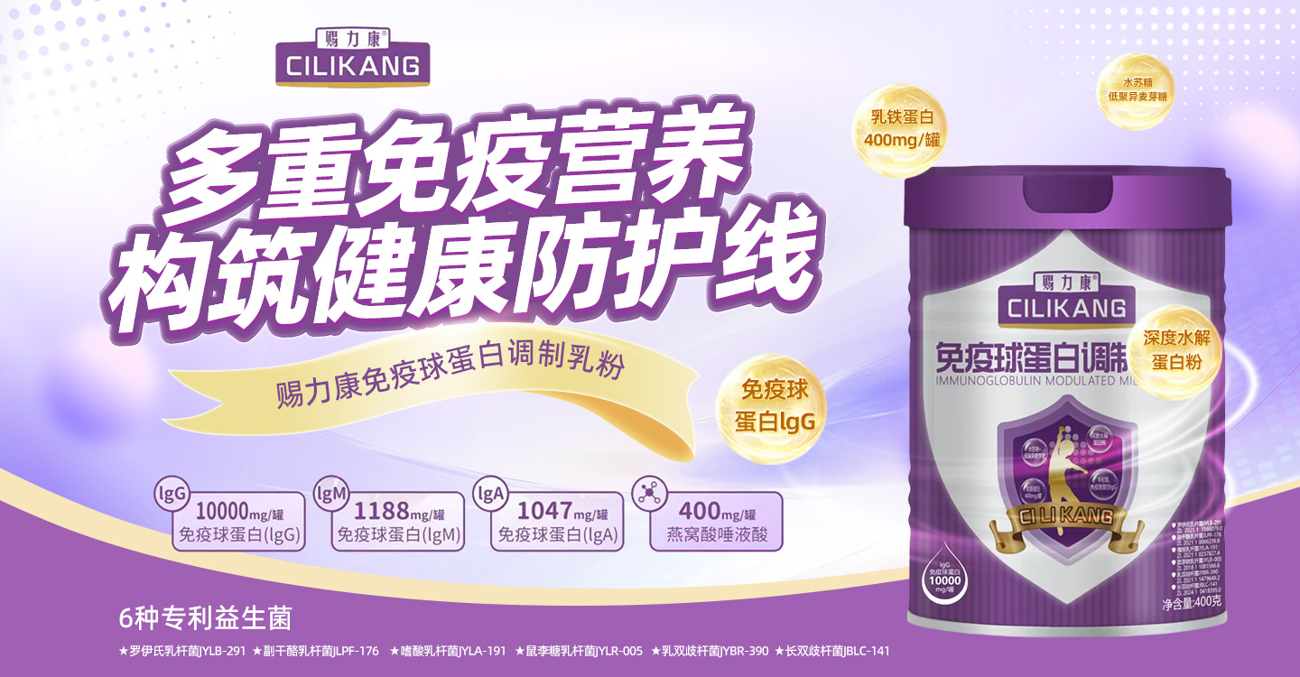 賜力康免疫球蛋白調(diào)制乳粉,多種核心營養(yǎng),科學(xué)配比,每罐添加乳鐵蛋白400mg、免疫球蛋白IgG 10000mg、免疫球蛋白IgM 1188mg、免疫球蛋白IgA 1047mg、燕窩酸400mg,還添加6種專利益生菌、牛初乳、水蘇糖、低聚異麥芽糖、深度水解蛋白粉、鈣鐵鋅硒等,多重免疫營養(yǎng)標(biāo)本兼顧,為全家人構(gòu)筑健康第一道防護(hù)線。