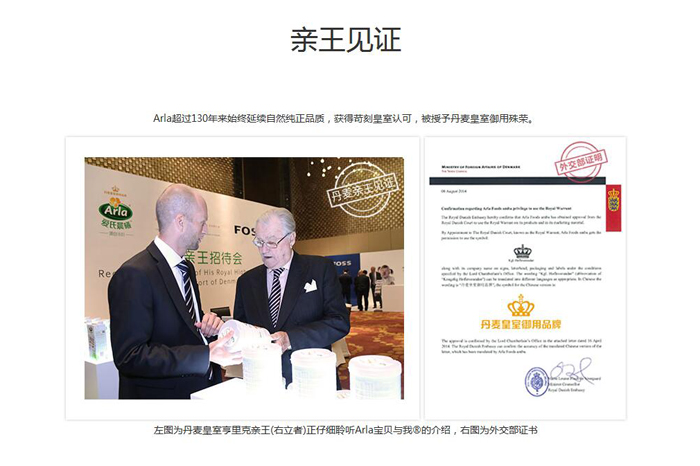 Arla超過130年來始終延續(xù)自然純正品質(zhì),獲得苛刻皇室認可,被授予丹麥皇室御用殊榮。
