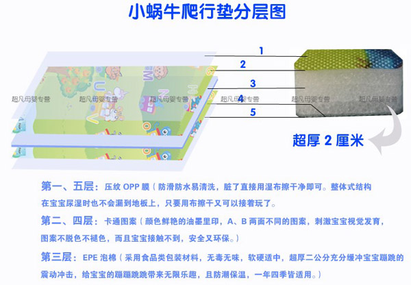 小蝸牛爬行墊無毒無味,防潮隔濕,超大無縫,表面附帶精美的童話圖案,從寶寶學(xué)爬到練習(xí)走路,再到大點(diǎn)在地上玩耍蹦跳,都是不錯(cuò)的選擇,是寶寶健康快樂成長(zhǎng)的好伴侶。