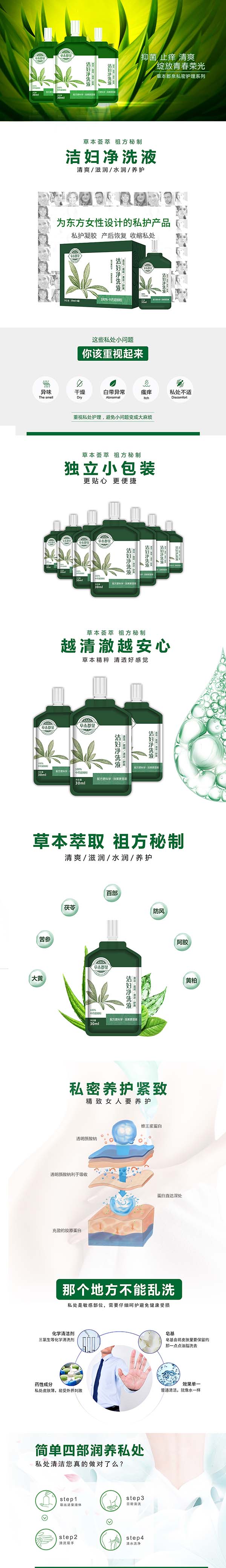 2. 女性外陰部清潔:取原液適量直接沖洗或擦洗。
