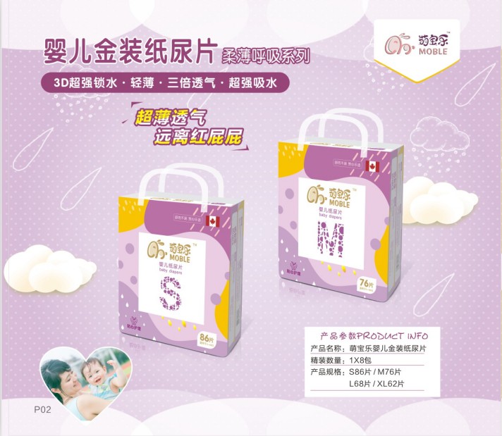 “萌寶樂”使用了健康護理型圖標,是專業(yè)用于健康護理的標識,得到專業(yè)檢驗部門的認可。它使用的材料大都是進口高分子和健康純白無印刷油墨的精選優(yōu)質熱風無紡布,讓產(chǎn)品擁有倍透排濕、柔潤親膚,抑菌防紅臀的特點,是值得媽媽信賴和放心的產(chǎn)品。
