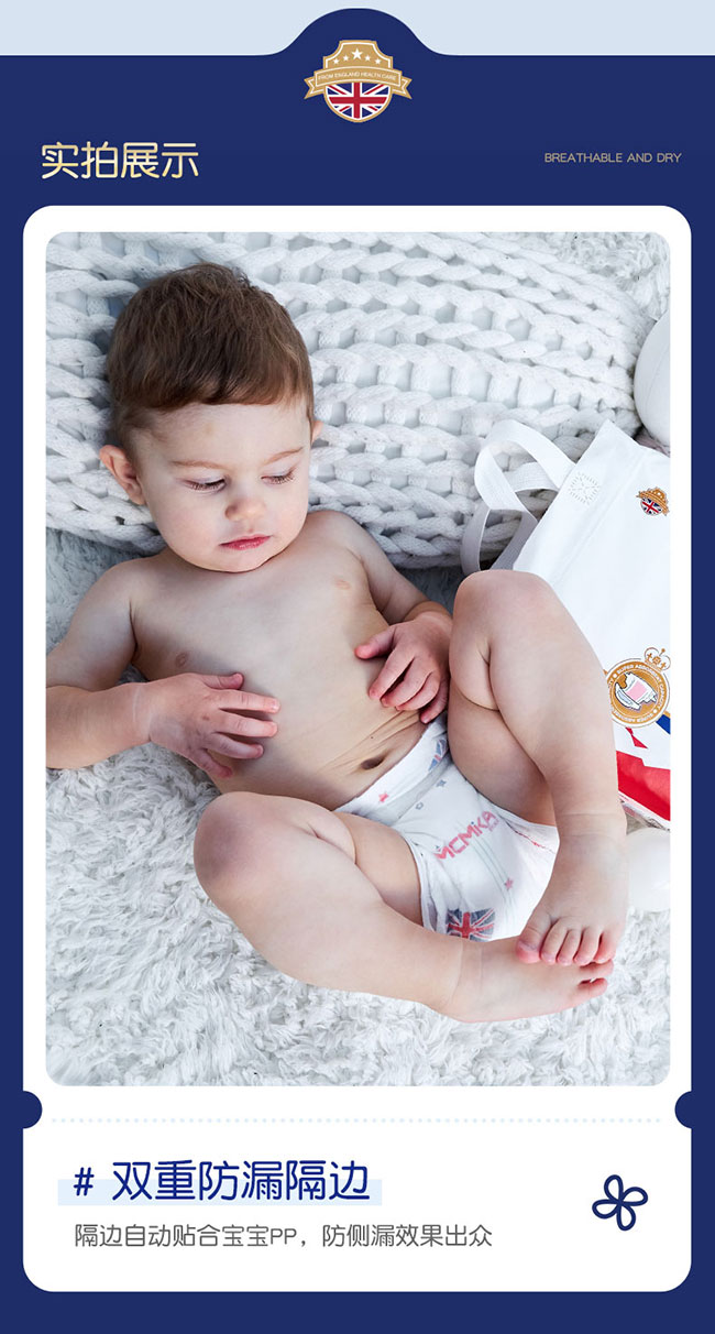采用英國(guó)技術(shù),熱風(fēng)親膚無(wú)紡布面層,呵護(hù)寶寶嬌嫩肌膚;0.1cm透光薄,僅一枚硬幣的厚度,輕盈貼身,寵愛(ài)裸感小屁屁,助力寶寶無(wú)拘無(wú)束,自由一整天;添加金縷梅植萃精華,舒緩呵護(hù),遠(yuǎn)離紅屁屁,金縷梅含有特殊柔敏因子,舒緩不安定的肌膚,消除肌膚的不適感。