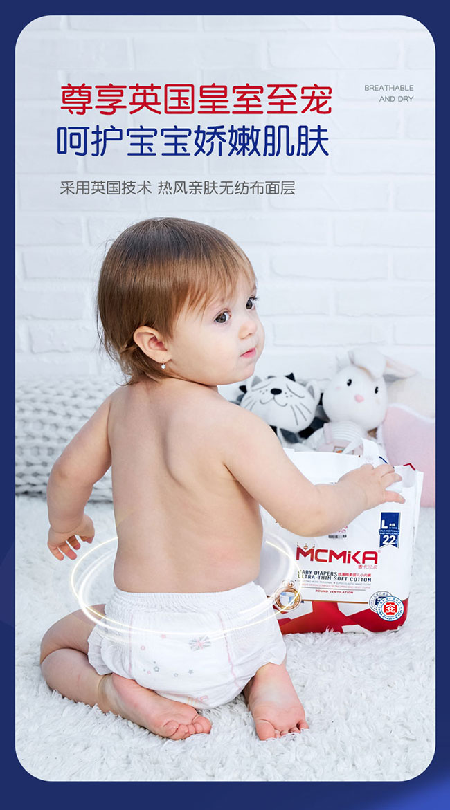 麥卡米卡絲薄棉柔嬰兒紙尿褲,超薄綿柔,天生親密,為成長加冕;透氣干爽,超彈護腰,醫(yī)護級認證,品質(zhì)更放心 。