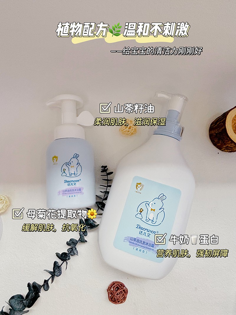 達兒文山茶油洗發(fā)沐浴露滋潤型,根據(jù)寶寶嬌嫩肌膚和發(fā)毛特點設(shè)計,深層滋養(yǎng),溫和潔凈,植物萃取。