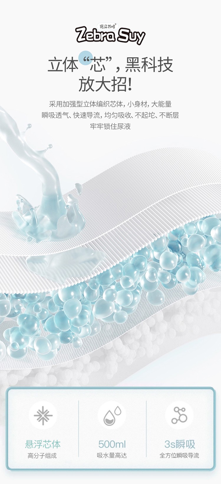斑馬蘇怡紙尿褲/拉拉褲,大環(huán)腰加高護(hù)圍,加寬腰圍設(shè)計(jì),柔軟有彈性,貼合身形不勒肚肚;輕柔蓬松3D熱風(fēng)立體棉層雙倍親膚的柔軟,如云觸感,宛若初生;薄約0.1cm輕薄芯,薄如一枚硬幣,小PP沒負(fù)擔(dān);立體“芯”,不止于薄還超能吸,增加前后吸水面積,容納寶寶大尿量;360°環(huán)抱寶寶小腰身,配合3D立體剪裁,動(dòng)感貼合寶寶曲線,隨心所動(dòng);采用加強(qiáng)型立體編織芯體,內(nèi)含魔力縮水珠,瞬吸透氣,快速導(dǎo)流,均勻吸收,不起坨、不斷層,牢牢鎖住尿液;雙層5cm加高防漏側(cè)擋,隨心動(dòng);靈敏智能尿顯,變色快,勤更換,給寶寶看得見的安心呵護(hù)。