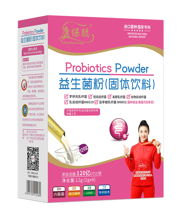康保聰益生菌粉系列產(chǎn)品,擁有國家發(fā)明,益生菌雙層包埋微囊工藝,有效保障了益生菌的活性。精選優(yōu)質(zhì)原材料,六聯(lián)益生菌,源自美國丹尼斯克,優(yōu)質(zhì)進(jìn)口菌種,特別添加120億活性益生菌,品質(zhì)保證,質(zhì)量安全。