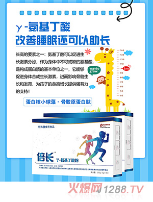 所以我們不難發(fā)現(xiàn),在使用富含GABA的食品時,如果能夠伴隨定量的運動,那么GABA的促進生長激素分泌的效果會更明顯,大量的GH分泌實現(xiàn)了運動長高的目的。孩子在使用富含GABA的食品后,能夠在更少量更精確的運動下,達到更好的長高效果。這樣輕松有趣的運動模式,讓孩子們對于運動不再有抵觸情緒,使得孩子們在快樂的玩耍中輕松實現(xiàn)運動長高。因此我們推薦孩子們食用富含GABA的食品,倍長γ-氨基丁酸粉特殊膳食用食品,含量純,復(fù)合組方,多維度補充孩子運動所需營養(yǎng),同時鼓勵孩子有規(guī)劃的定量運動,讓運動長高不再疲勞無趣,讓運動長高變得輕松高效。