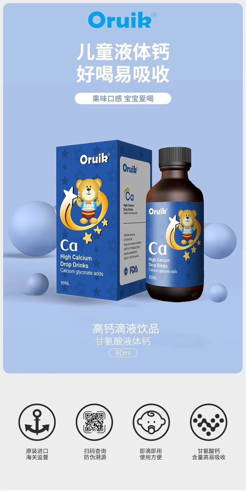 近日,由美國品牌奧瑞康(Orulk®)推出的兒童營養(yǎng)補(bǔ)充食品——奧瑞康鈣滴劑,正式進(jìn)入中國市場(chǎng)。該產(chǎn)品以“甘氨酸鈣”為主要成分,以滴劑形態(tài)呈現(xiàn),為家庭補(bǔ)充營養(yǎng)提供了新的選擇。