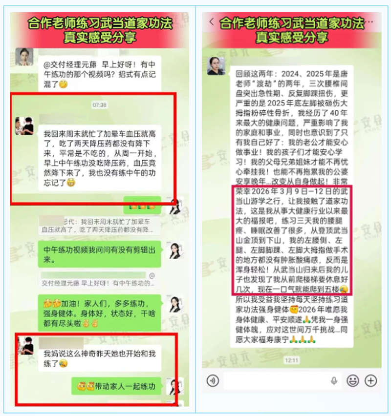 暫別忙碌的工作節(jié)奏,置身仙氣飄渺的武當仙山,清晨,在武當大師的帶領下修習道家正統(tǒng)養(yǎng)生功,于吐納間喚醒身體本源活力;夜晚,靜心聆聽道家文化講座,感悟天人合一的養(yǎng)生智慧。這種沉浸式的體驗,讓大家的心靈得到洗禮與沉淀,從而以更平和的心態(tài)、更飽滿的狀態(tài)迎接未來的事業(yè)與生活。