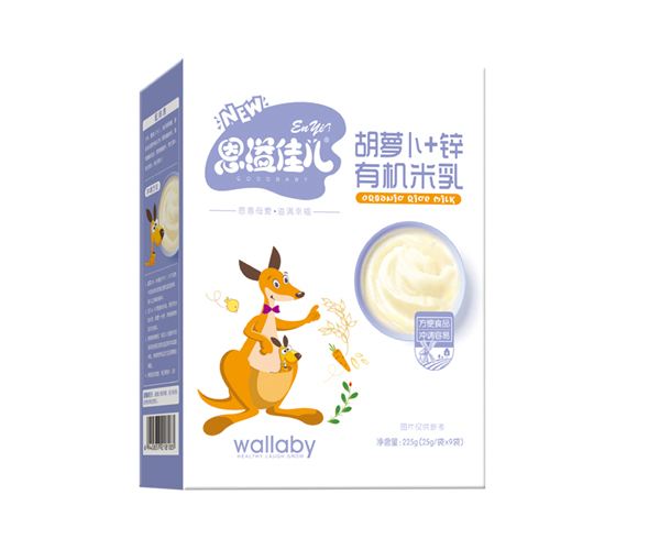 恩溢佳兒胡蘿卜+鋅有機(jī)米乳 盒裝產(chǎn)品展示
