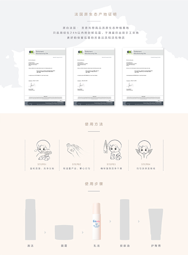 Ellebébé 噯樂蓓貝源自法國,聯(lián)合法國Dermscan植物護膚研究室,潛心研究嬰幼兒肌膚成長特點,從法國皇室古籍中獲取靈感,歷時5年傾心研發(fā),甄選源自法國皇室的ILR-Florex三色花精粹搭配棉籽精華,將珍稀植物的天然育膚力發(fā)揮到極致,結(jié)合法式美育藝術(shù)設計,溫和滋養(yǎng),全方位奢寵,保護寶貝的嬌嫩肌膚。